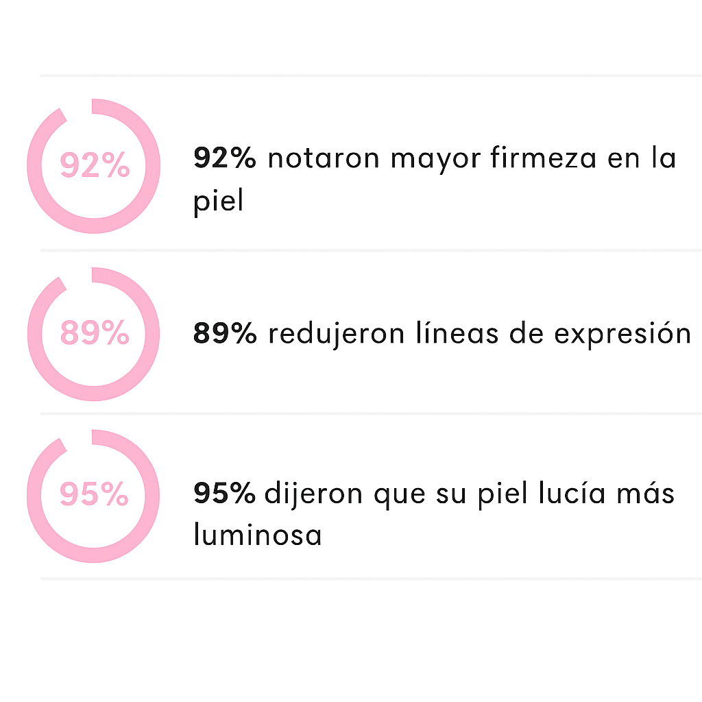 La mayoría de usuarias reportan una piel más firme y luminosa en solo 2 semanas.