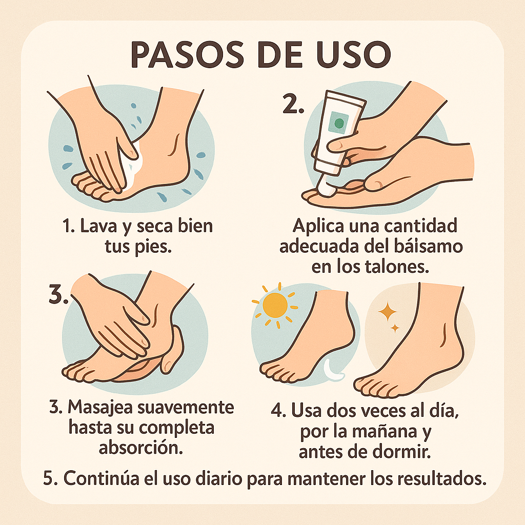 Este bálsamo está formulado para todo tipo de piel, especialmente talones secos, agrietados o con durezas. ¡Notarás cambios desde la primera aplicación! 👣✨